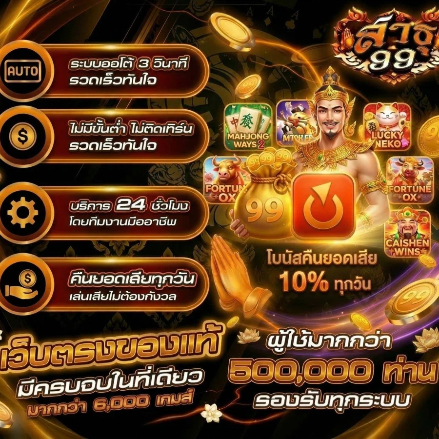 ต้องบอกเลยว่าโบนัสและโปรโมชั่นของ sathu99 นั้นเด็ดจริงๆ ครับ เพื่อนๆ หลายคนที่เล่นพนันออนไลน์คงเข้าใจดีว่าโบนัสที่ดีสามารถช่วยเพิ่มโอกาสทำกำไรได้มากแค่ไหน โดยเฉพาะสำหรับมือใหม่ที่เพิ่งเริ่มต้น ซึ่งทาง sathu99 ได้จัดเตรียมโปรโมชั่นสุดพิเศษมากมายไว้ให้สมาชิกทุกท่าน